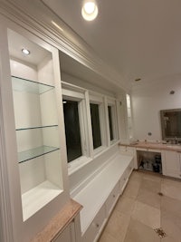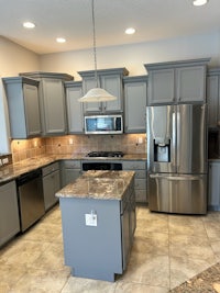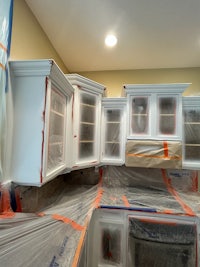 Waterborne lacquer style finish: Spray-applied in controlled stages for a smooth, durable, factory-grade surface on doors, drawers, and face frames.